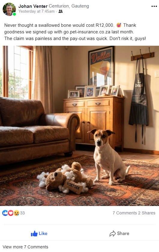 With Pet-Insurance.co.za, you get affordable, flexible cover that keeps your best friend healthy and your budget happy.
