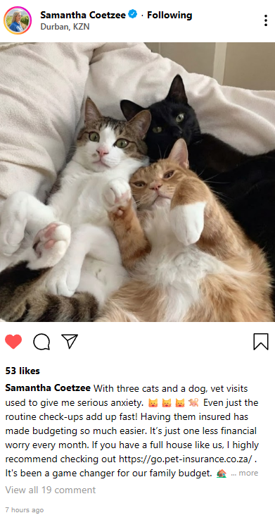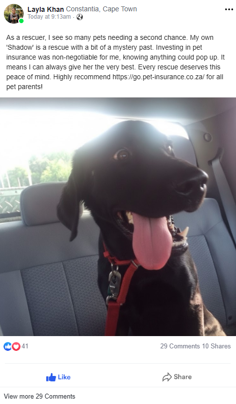 A pleasant experience all round! go.pet-insurance.co.za made the process of insuing my pet so simple.